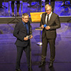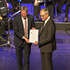 als er von Ehrengast Jochen Haußmann - Präsident des Deutschen Harmonika Verbandes - für 40 Jahre aktives Dirigat im